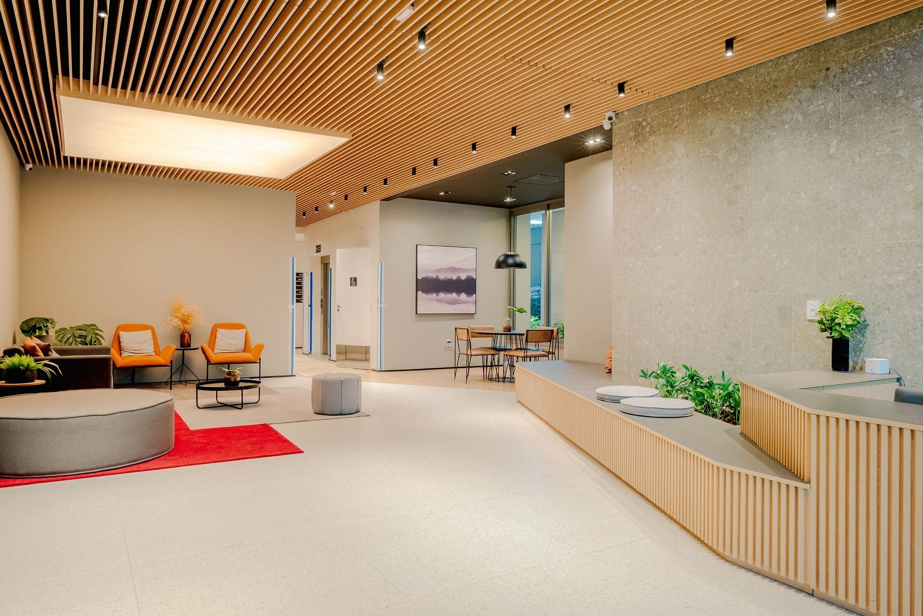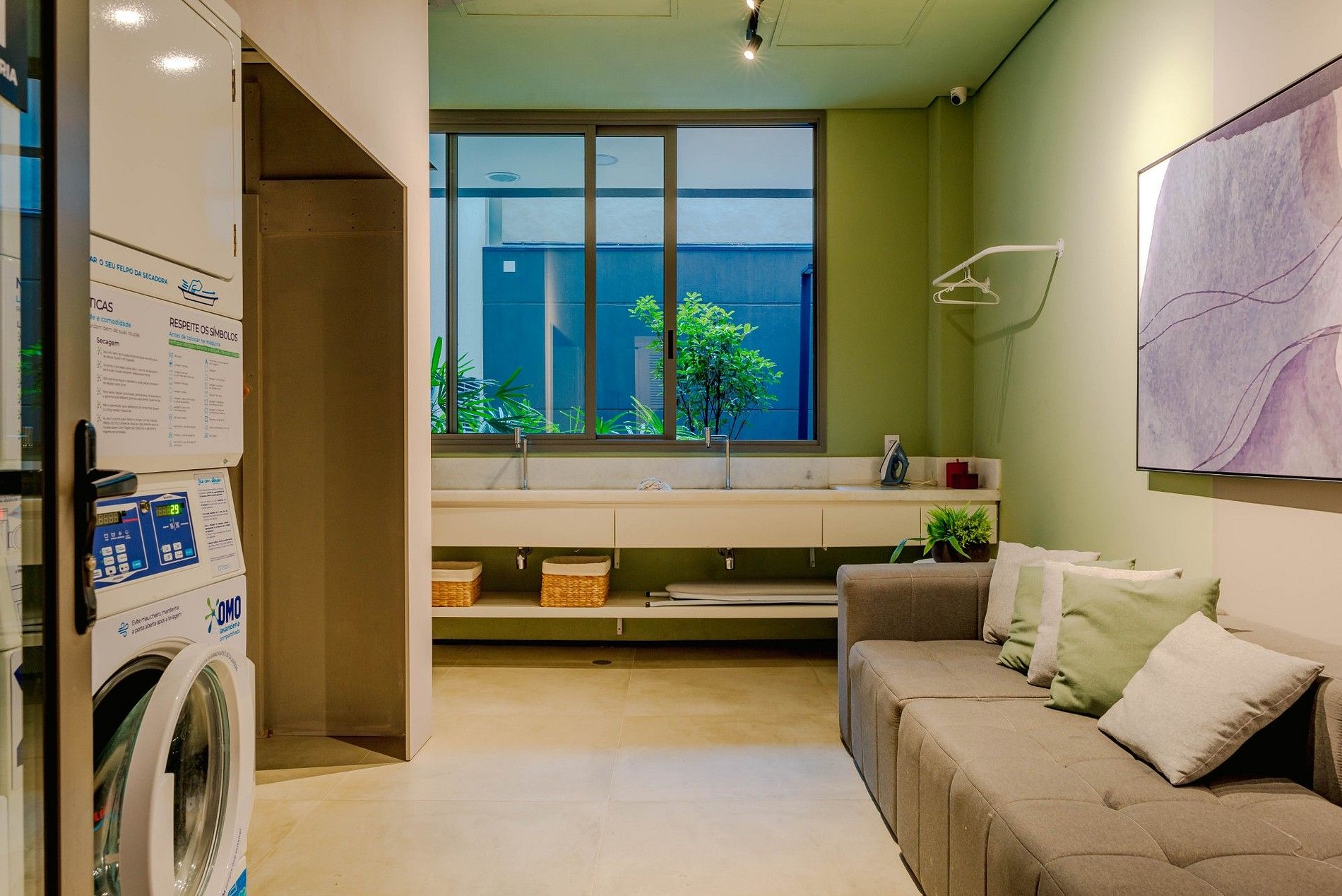 O hóspede pode utilizar a academia, piscina aquecida, hall de entrada, lavanderia coletiva e espaço de coworking, sendo estes dois últimos mediante agendamento. A entrada no apartamento é feita por meio de uma porta eletrônica com senha enviada pelo anfitrião até 24 horas antes do check-in. O prédio conta com portaria 24 horas.